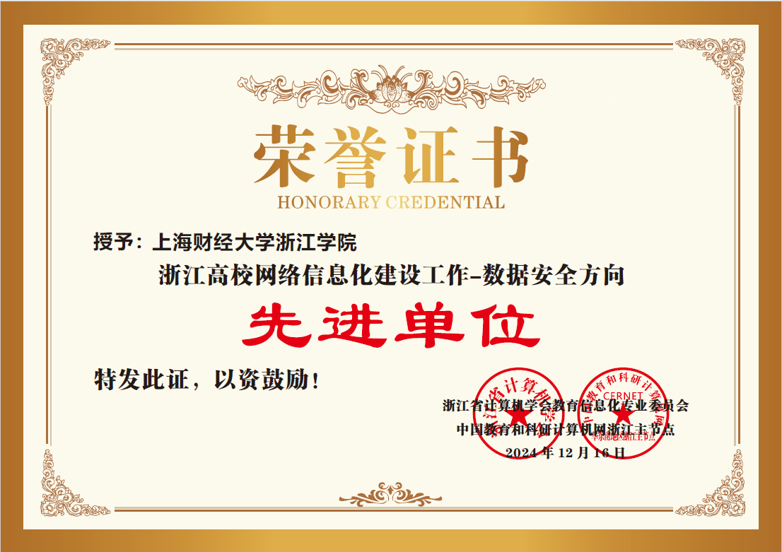 近日,浙江省计算机学会、中国教科网浙江主节点公布了“浙江高校网络信息化建设先进单位”名单,我院再次成功获评。教育技术中心华多老师也成功获评“浙江高校网络信息化先进个人”。