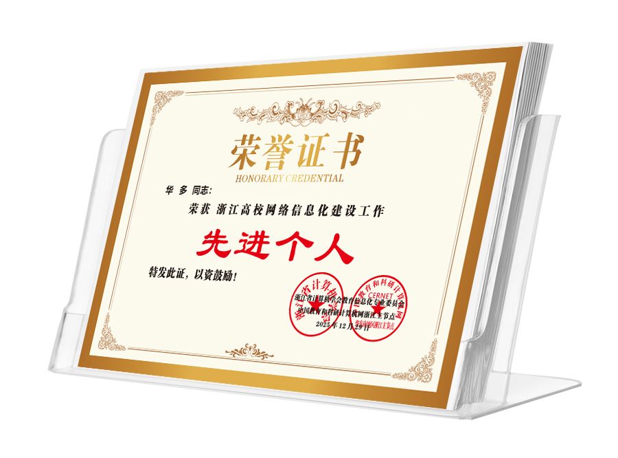 12月29日,浙江省计算机学会、中国教科网浙江主节点公布了“浙江高校网络信息化建设先进单位”名单,我院再次成功获评。教育技术中心华多老师成功获评“浙江高校网络信息化先进个人”。